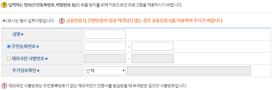 - 공인인증서로 본인인증을 합니다.