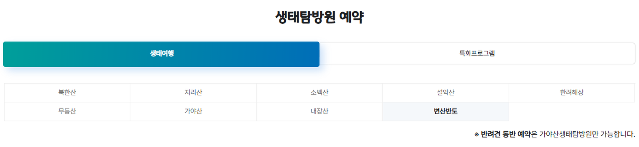 - 예약 메뉴에서 '변산반도 생태탐방원'을 선택합니다.