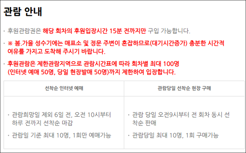 관람 방식 및 입장 제한 사항