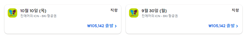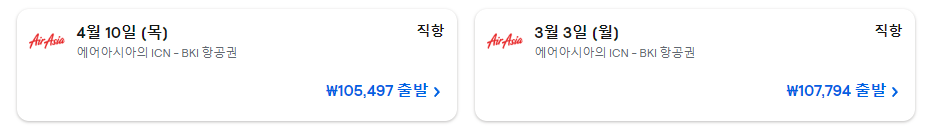 코타키나발루 항공권을 구매할 때 가장 중요한 것은 바로 시기입니다. 언제 구매하느냐에 따라 같은 항공권도 가격 차이가 크게 날 수 있죠. 일반적으로 코타키나발루 여행의 성수기는 9월입니다. 이 시기에는 항공권 평균 요금이 158,867원 정도입니다.