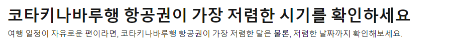 하지만 더 저렴한 가격에 항공권을 구매하고 싶다면, 6월을 노려보는 것도 좋습니다. 6월은 코타키나발루행 항공권이 가장 저렴한 달로, 편도 항공권의 평균 요금이 298,323원 정도입니다. 반면 12월과 1월은 요금이 가장 비싼 달이에요. 이 시기에는 대한민국발 항공권의 평균 요금이 각각 639,263원, 637,888원 정도로 높아집니다.